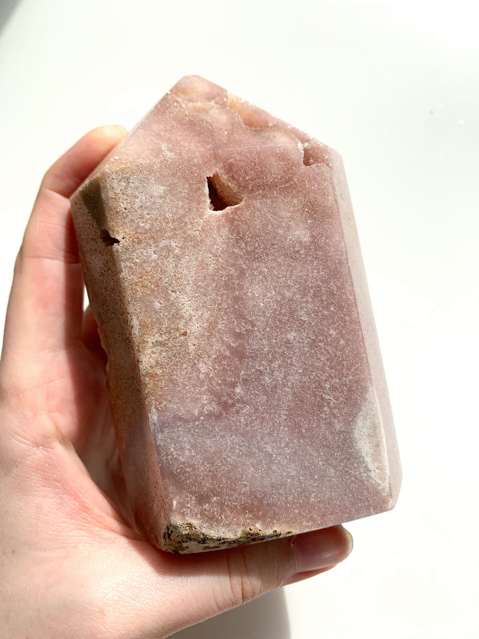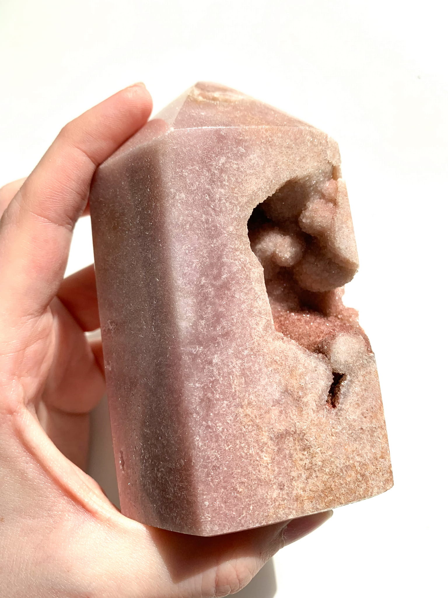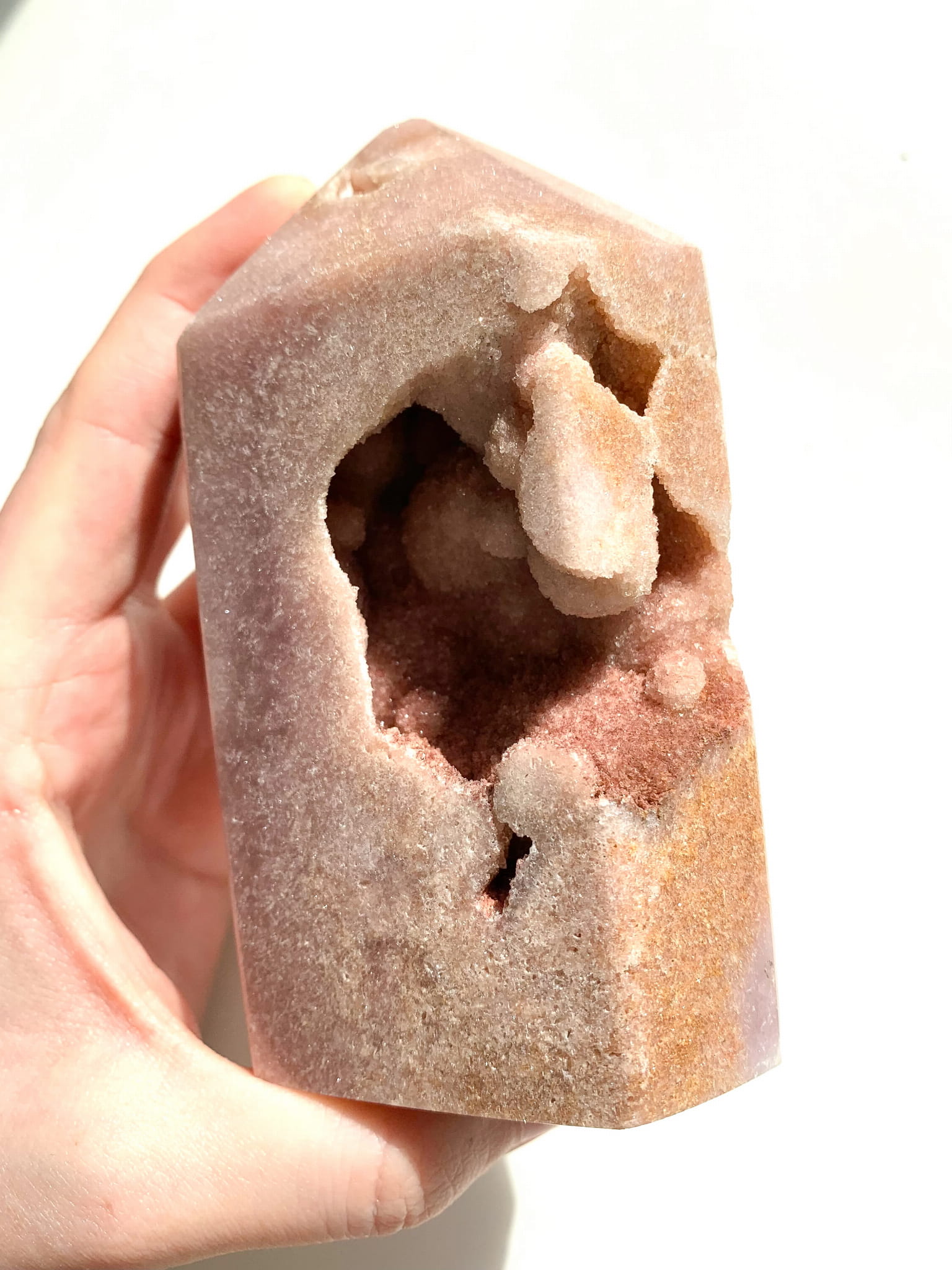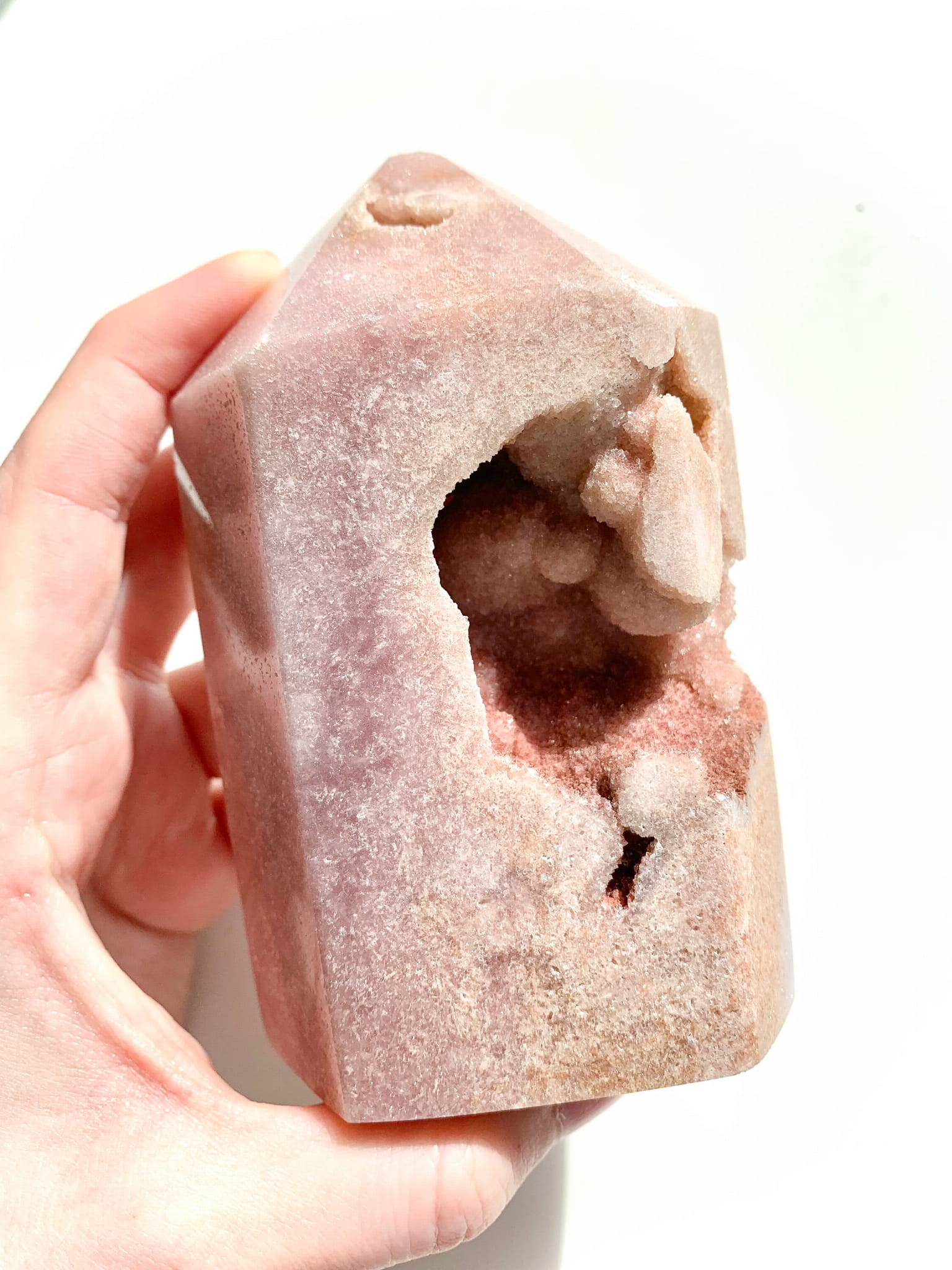 Ametyst różowy posiada charakterystyczny różowy kolor, od bladoróżowego, przez prawie czerwony, a również brązowy, szary i biały. Ametyst różowy to kamień miłości, spokoju i równowagi emocjonalnej. Jest to również minerał, który otwiera czakrę serca co pomaga zarówno w dawaniu miłości jak i jej otrzymywaniu.